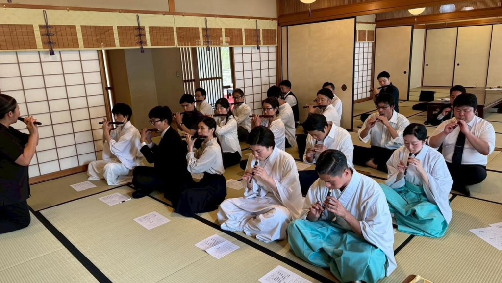 当日は24名の方にご参加いただき、雅楽研修会に際して、初心者の方を始め久しぶりに楽器に触れる方など、雅楽研修会に興味はありつつ、一歩踏み込めない方々の不安を解消することができました。