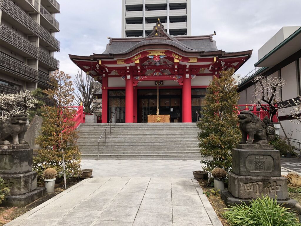 御社殿 平安時代より菅原道真公をお祀りし、徳川三代将軍家光公の頃に御社殿を造営。戦災で焼失したのち再建され、平成26年に現在の御社殿が造営されました。