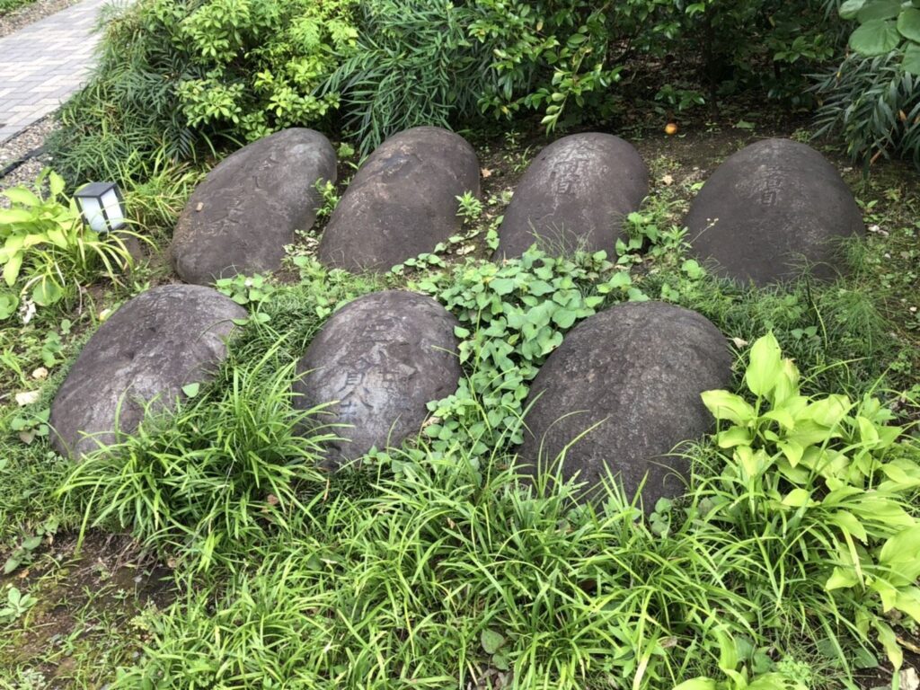 力石 江戸時代、祭礼などの余興として、力比べに使われた石。表面には、重さと持ち上げた人物の名前が刻まれています。